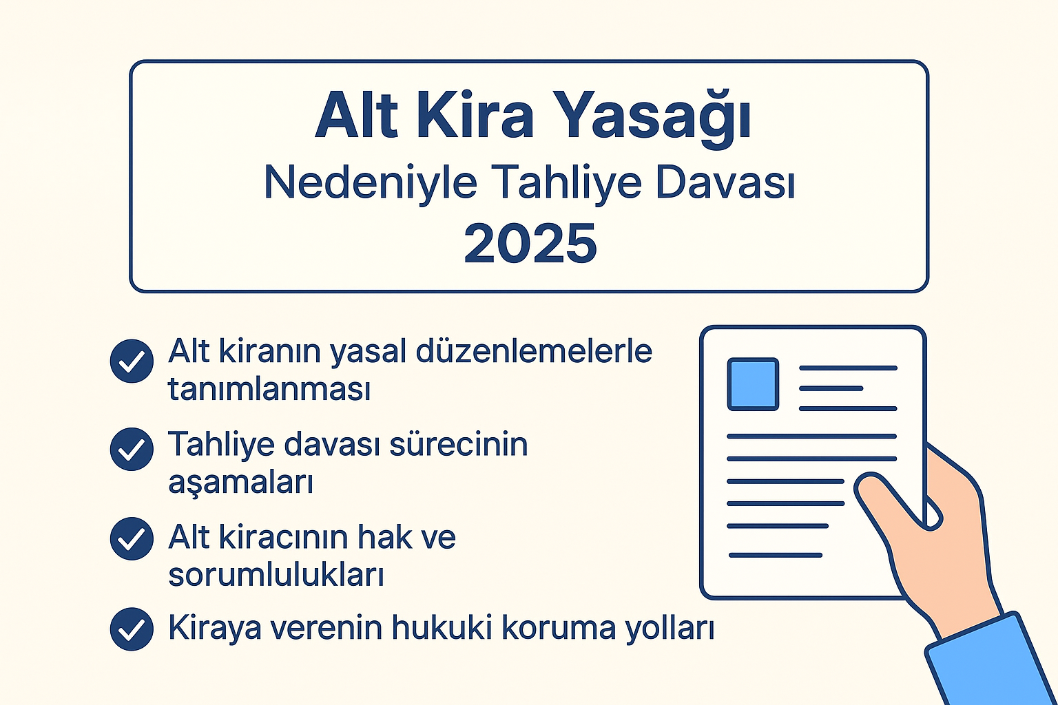 Alt kira yasağına aykırılık, sadece kiracıyı değil, alt kiracıyı da doğrudan etkileyen ciddi bir hukuki süreçtir. Tahliye sürecinde 30 günlük ihtarname, arabuluculuk ve ispat kuralları büyük önem taşır.